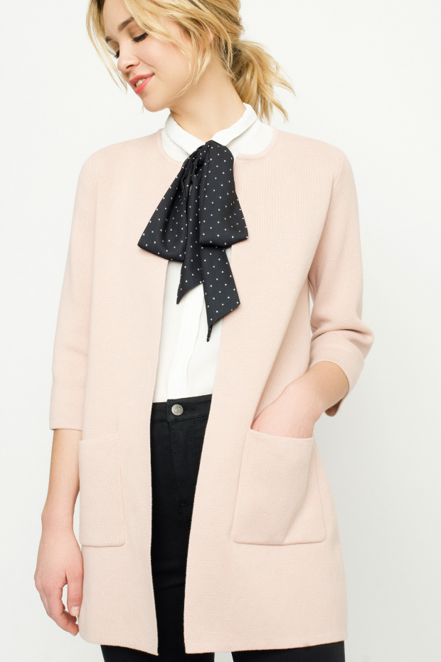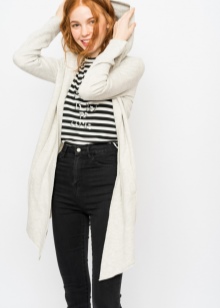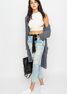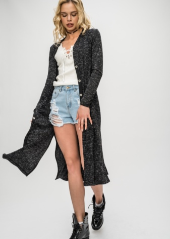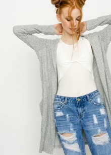 This season cardigans of volumetric styles that suit women with any figure are in fashion, because they successfully hide both excessive completeness and its disadvantage. The length can be the most diverse - from very long, almost floor-length to short, with a length to mid-thigh. Cardigans can be either with or without clasps. As an element of the basic wardrobe, cardigans of various textures and colors are successfully combined with both miniskirts and shorts, as well as trousers and jeans. Perhaps a combination of cardigans, even with evening gowns.
