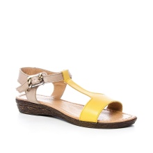 Ladies will be able to look feminine and attractive in stylish sandals on a small and square heels. The upper part in such products can be made in the form of a usual leather strip or a cunning weave of the material. It can not but rejoice and a huge selection of colors of products: from yellow to blue. Such instances are at the peak of popularity in recent times.
