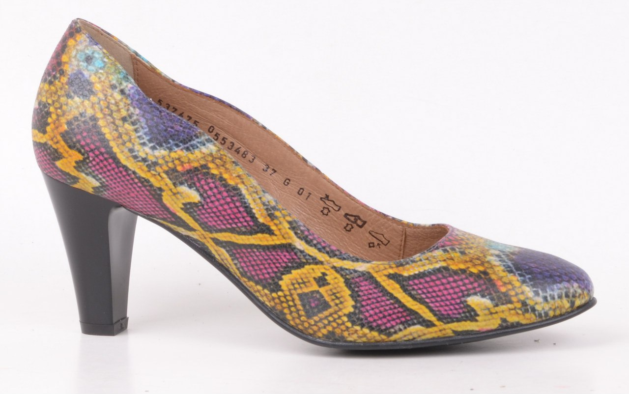 Products on a steady heel with various prints look bright and feminine. These options look great in tandem with light and gentle outfits.