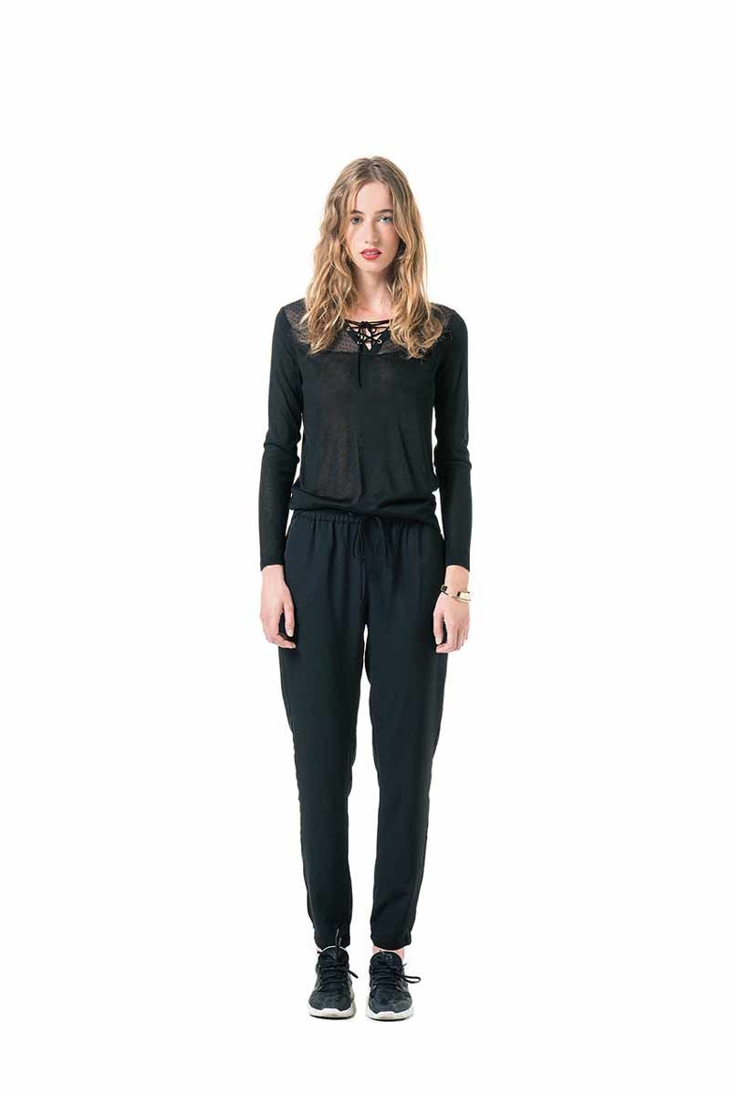 Pants are presented with a straight cut and supplemented with an elastic band. Such models do not constrain the freedom of movement. The manufacturer creates monochrome models, decorating them with embroidery, patch pockets and other elements. Flowing models of tensel look beautiful and elegant. They can be used to create a casual or sporty style.