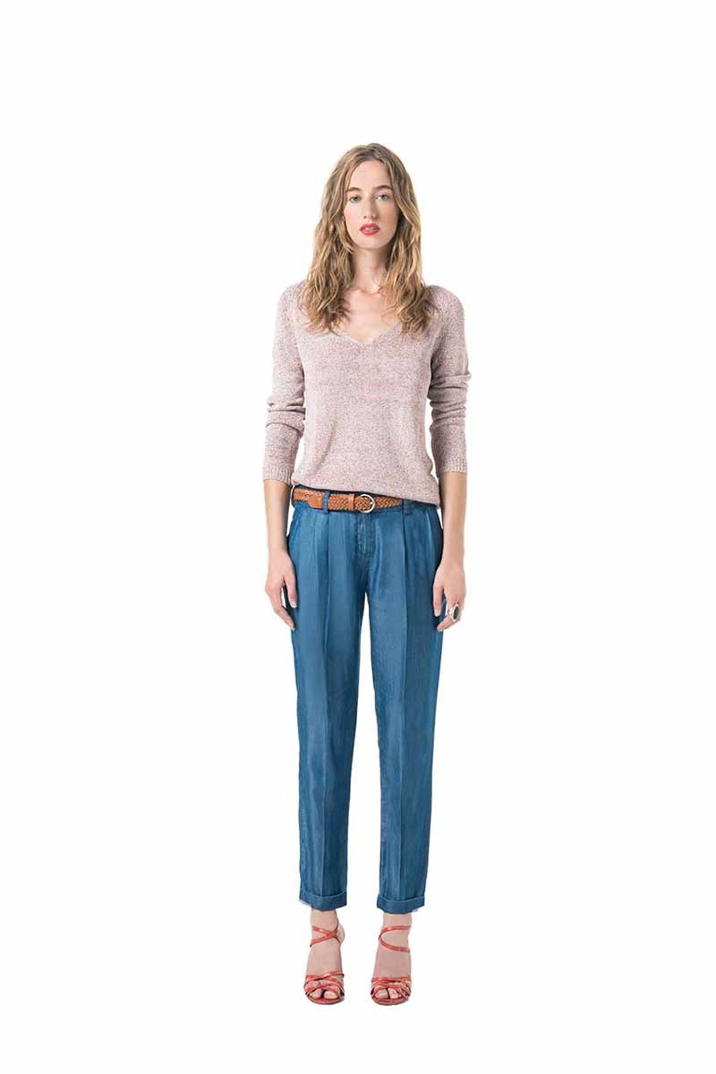 Knitwear are sewn from both thin and dense knitwear. For pullovers and jackets, a dense knitted fabric is used, but blouses are made of thin material, ensuring ease and convenience.