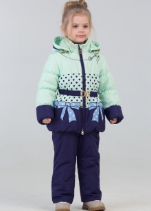 For babies, a transforming overalls is offered, which with the help of lightning turns from overalls into an envelope. He is also equipped with all sorts of useful nuances: wind protection bar, inner cuffs, detachable hood, booties and mittens, cuffs on sleeves and pants, adjusting the length. With such a powerful defense, your treasure is not afraid of either frost or wind.