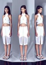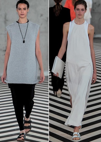 It seems that coarse sandals and skirts can hardly meet in one bow, but in practice everything is different. They look great with a knitted skirt pencil, with a full midi skirt length and a skirt of flying fabric.