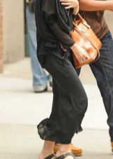 The most common option is to wear flip flops with various pants. They are no worse than other summer shoes look with tucked or cropped jeans and trousers.