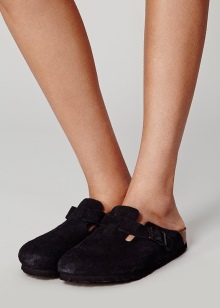 The clogs of "Birkenstock" are represented by two models - Boston and Amsterdam. These are slaps closed in front, which also resemble a clog. Amsterdam is a laconic model with no additional elements, and Boston is complemented by a brand strap.
