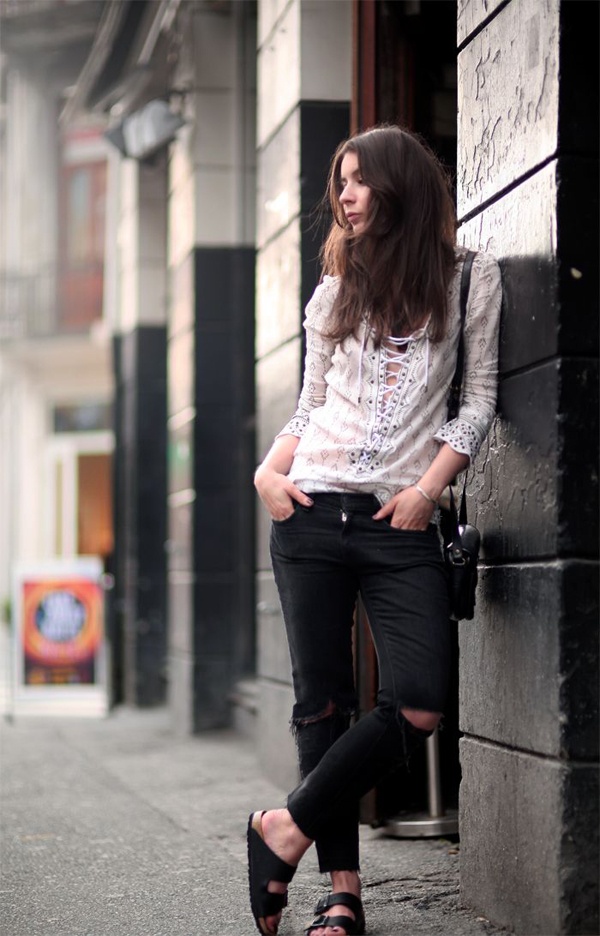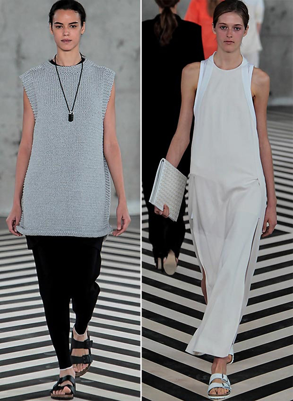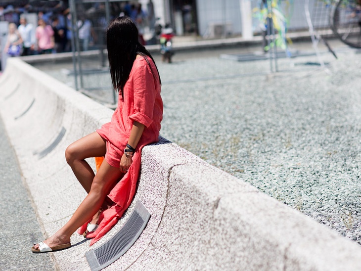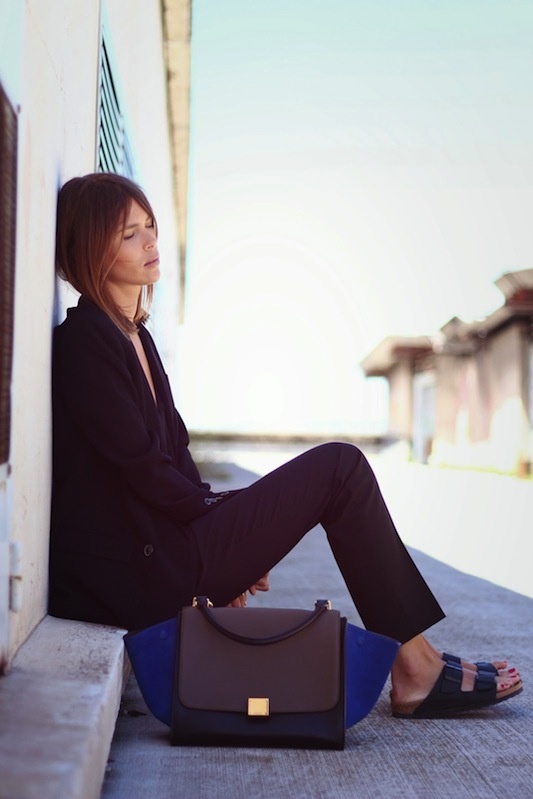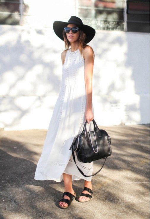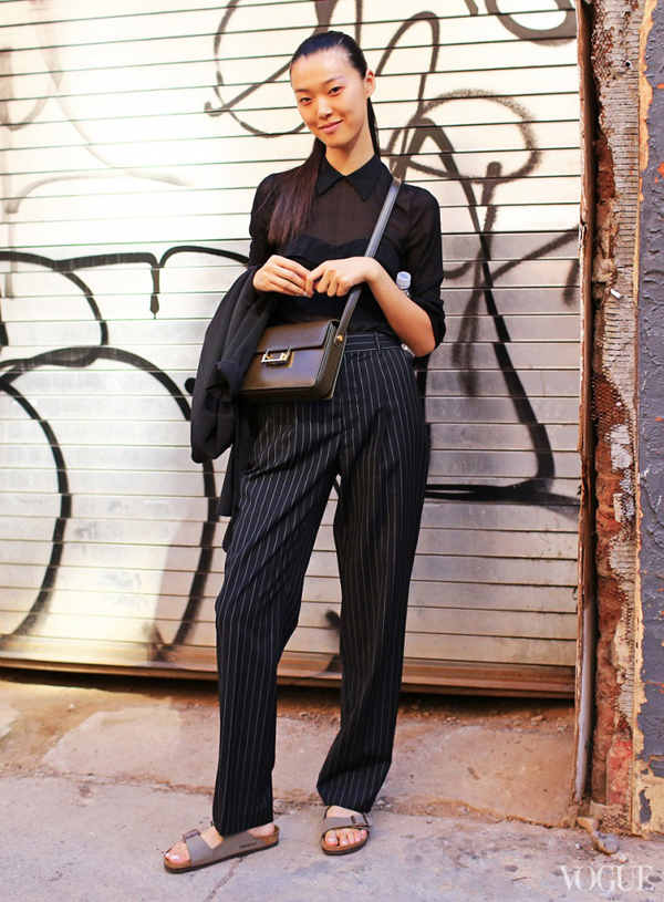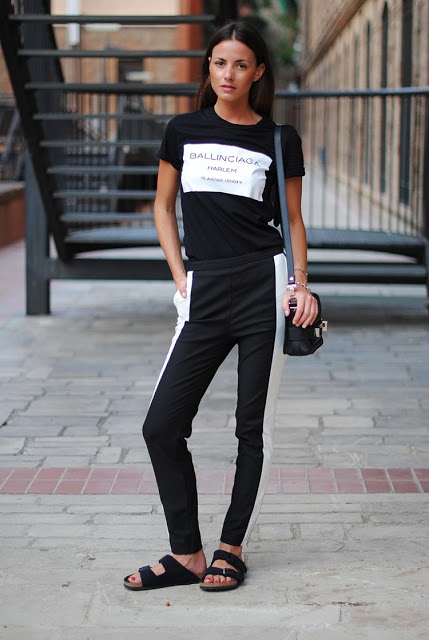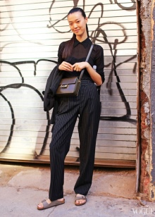 These wide cropped trousers are still popular, so they can be easily combined with Birkenstock sandals. It turns out a very harmonious relaxed look - nothing constrains movements, legs feel as comfortable as possible, and you look very stylish.