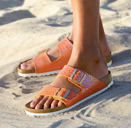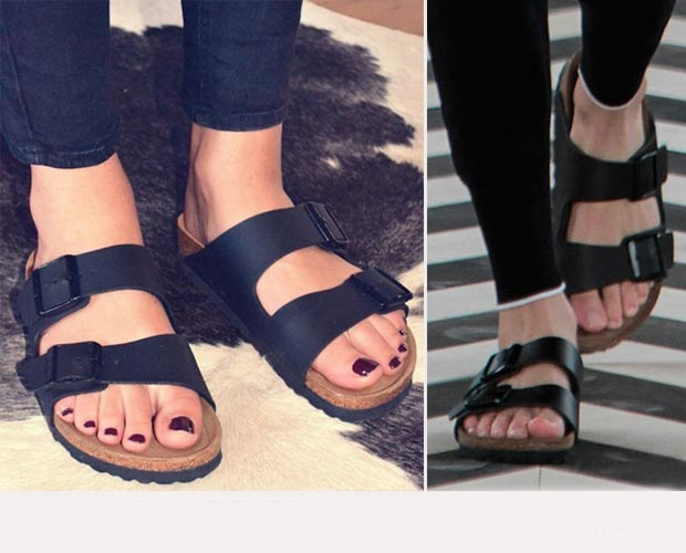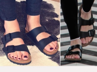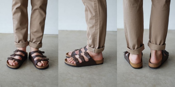 Birkenstock sandals and flip-flops have a recognizable design. Most often it is 1, 2 or 3 straps located across. Due to the presence of buckles, you can adjust the fullness of the shoe.