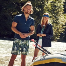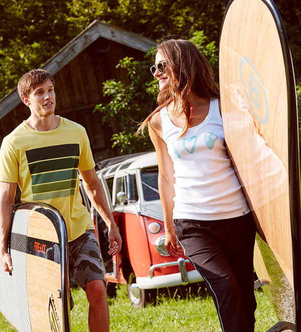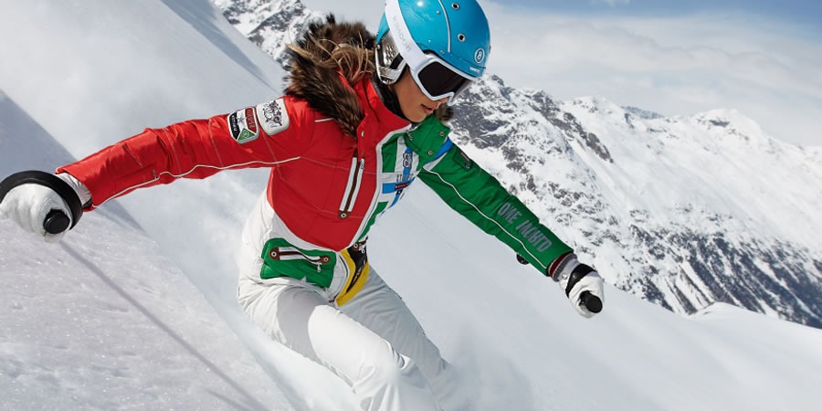 Branded clothing for golf, skiing and fitness has an ergonomic fit and the most sophisticated finish.