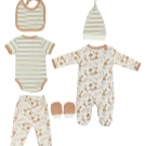 The brand offers things for kids from 0 to 8 years. For newborns, these are bodysuits, sliders, vests, bibs, and other necessary accessories, mostly in pastel shades. Many mothers care about what the baby’s first clothes will be like, and for good reason. In the first days of his life it is especially important for him to feel comfortable in the world around him.