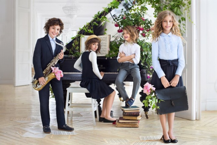 The range of clothes for school includes skirts, blouses, turtlenecks, sundresses, dresses, pants, shirts, shorts. The Italian look at school uniforms from Alessandro Borelli changes the whole idea of the dull and gray monotony of such clothes. This is an unsurpassed style, fashionable clothes. In her child looks beautiful and elegant.