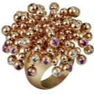 Many products are decorated with large diamonds, which are very rarely used one by one. Usually a large stone is located in the center, and along the contour it is accompanied by many small pebbles.