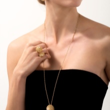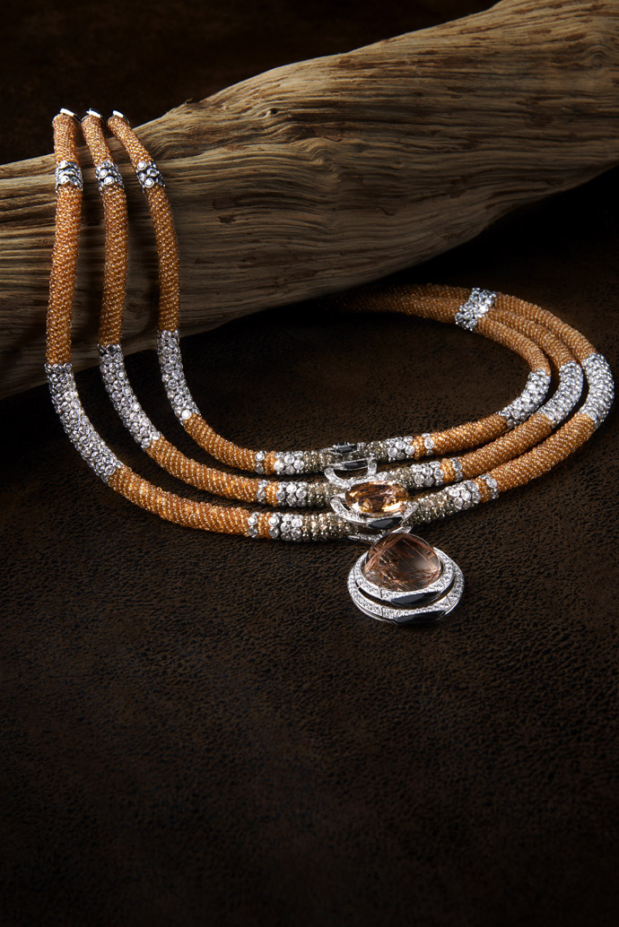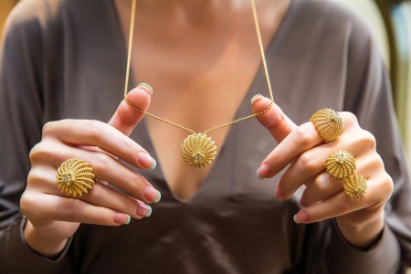 A collection of jewelry made by a special technique: one product consists of three different rings, different from each other alloys: white, yellow and rose gold.