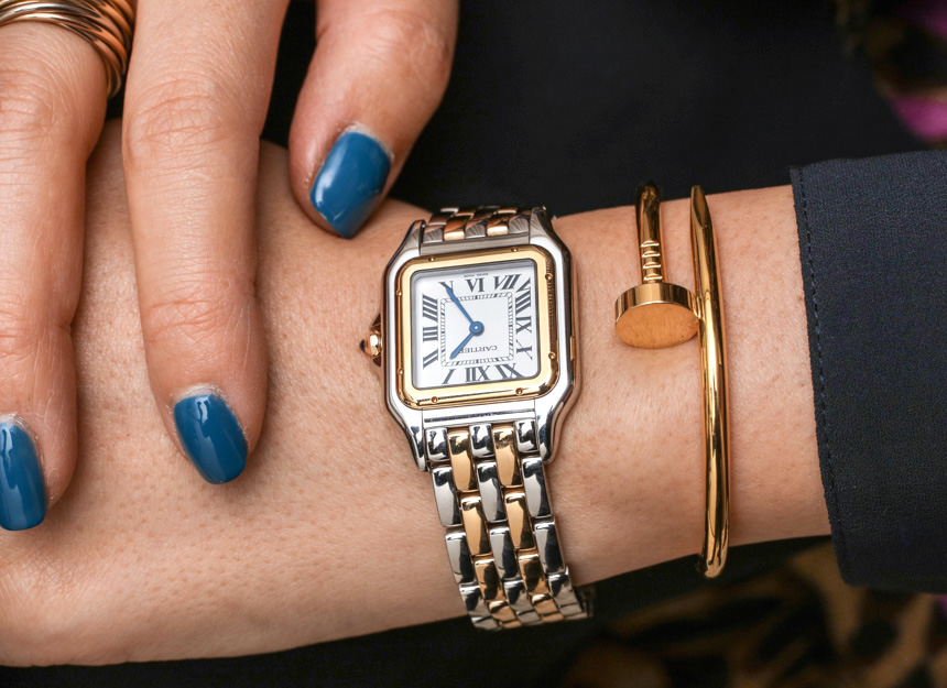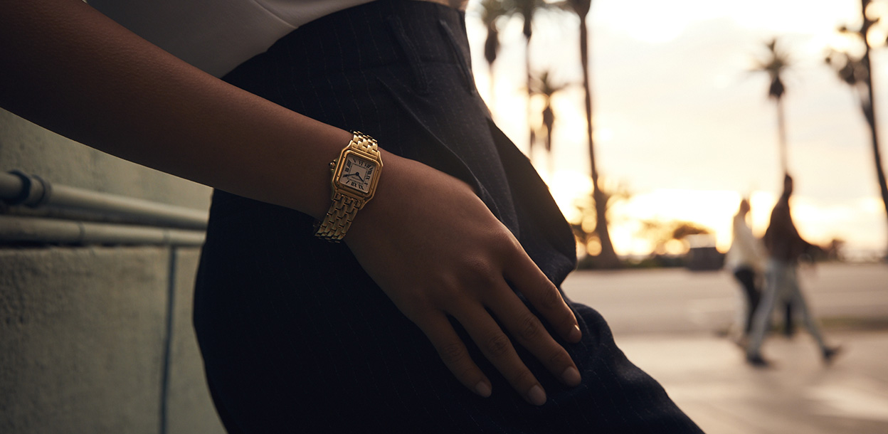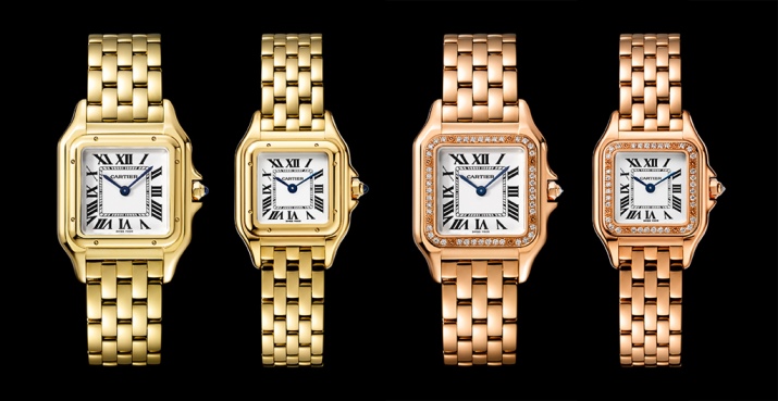 - The Panthere De Cartier models are, perhaps, the most sophisticated design of all others, but suitable even for busy everyday life. The rectangular dial (in combination with a graceful bracelet) gives the product not only a light charm, but also neat outlines.
