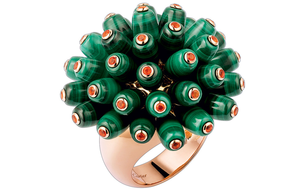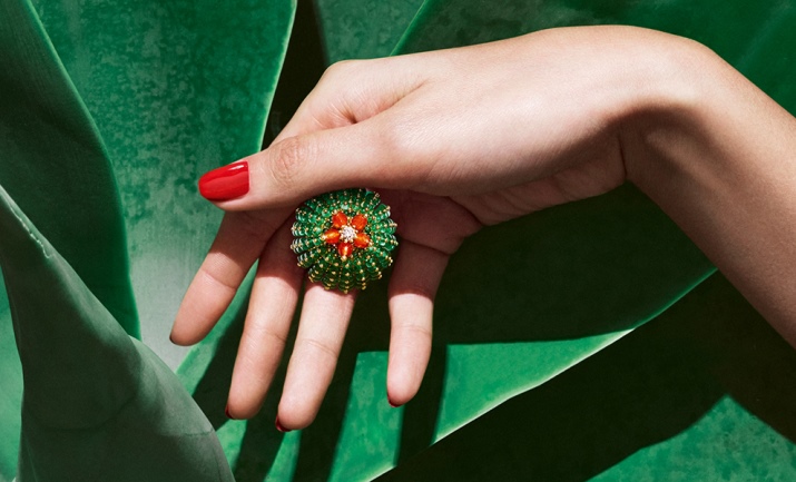 The chains and necklaces of Cactus De Cartier have a décor, which is a small cactus head. The products are made of yellow gold, and diamonds, emeralds and lapis lazuli are used as decoration.