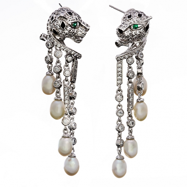 Not all models have exclusively diamond decor. One of the Cartier collections is represented by two models of pearl earrings. Products are almost identical, one model can be distinguished from another only by the color of pearls: in one case they are white, in the other - dark.