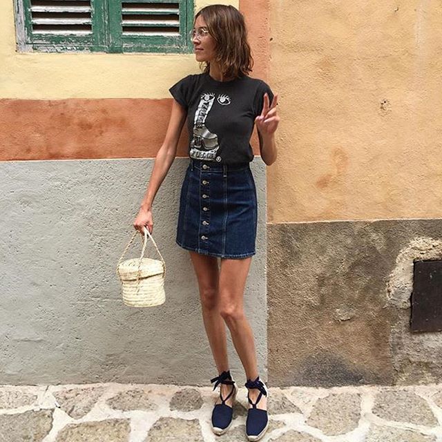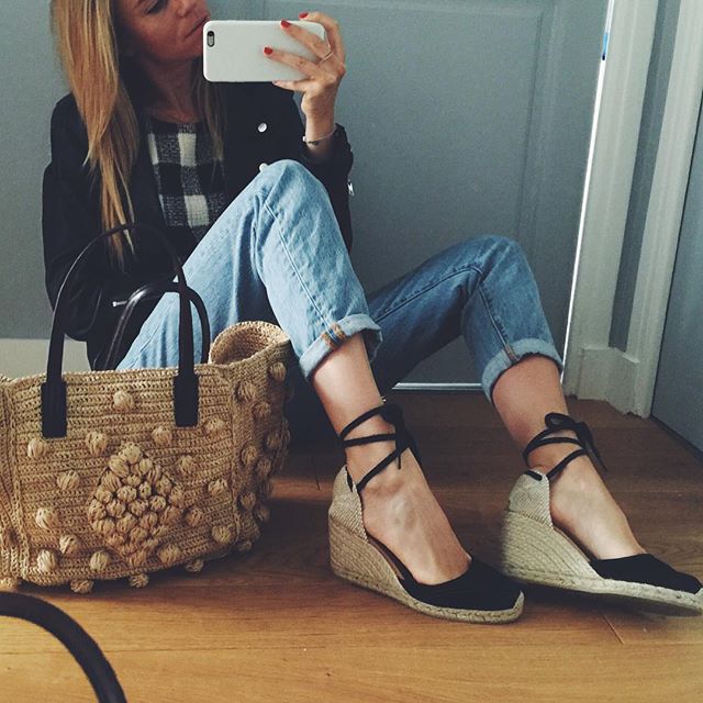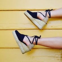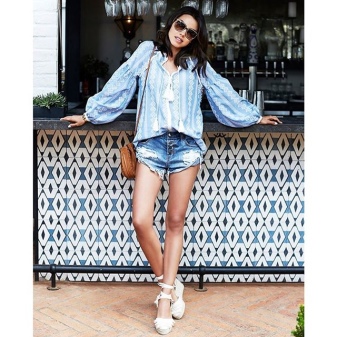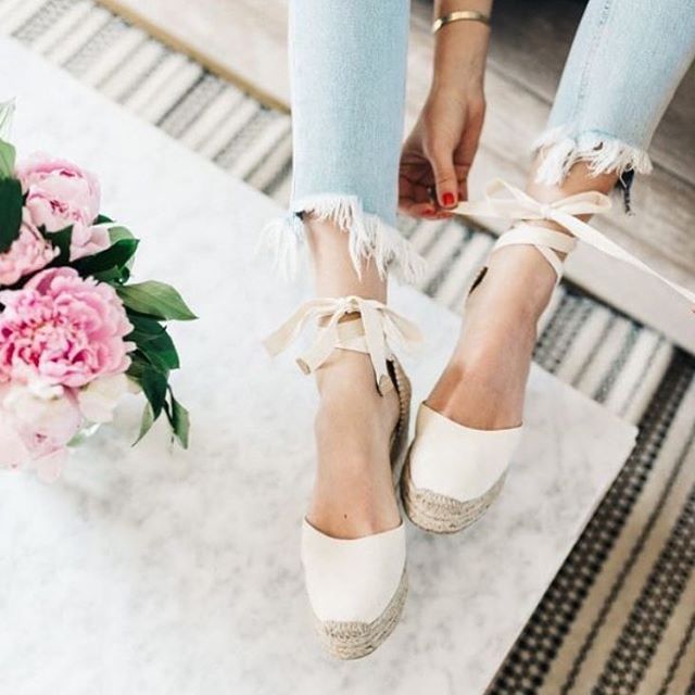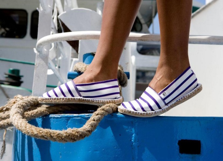 Spanish espadrilles are in perfect harmony with linen and cotton clothes, as well as denim. Do not forget that they are worn only on bare feet, any hosiery should be excluded.