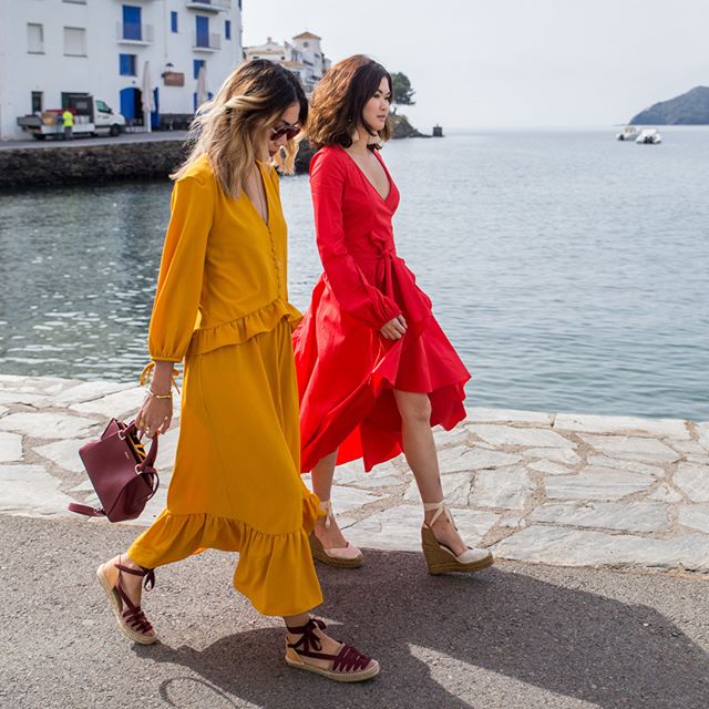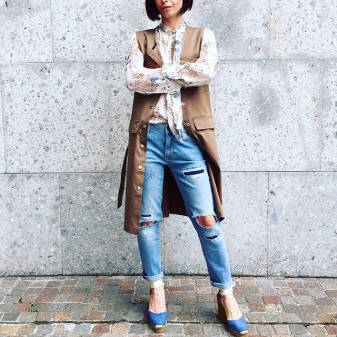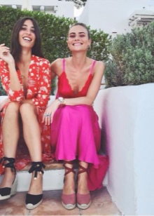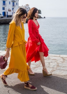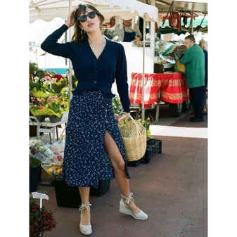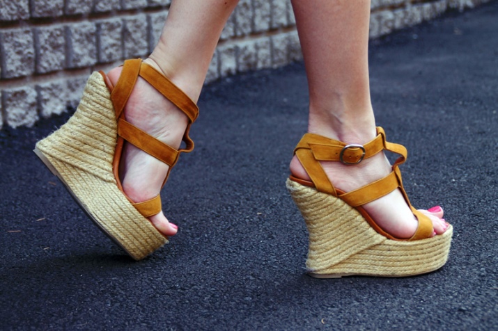 Models wedge look very elegant. Their best companions are dresses and skirts made from natural fabrics, which can be of any length. Espadrilles with ribbons or elegant straps can be worn to create a romantic style. In combination with an airy dress or skirt you get a very light look.