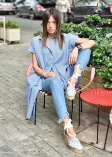Flat espadrilles go well with light sundresses, jumpsuits and shorts. The length of the dress should not be below the knee. Flat models look great with clothes in a nautical style, also perfectly complement the style of safari and military. The combination with leather clothing adds to everyday life.