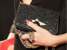 - red silk clutch in the form of strawberries with Swarovski crystals;