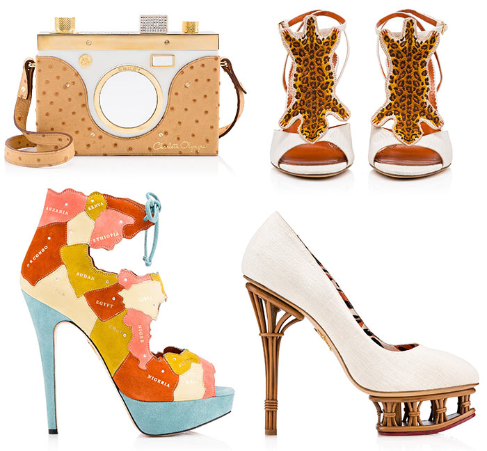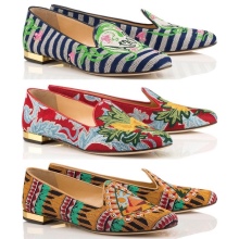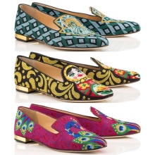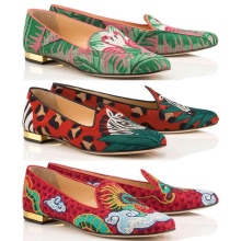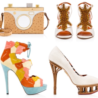 A distinctive feature of shoes and accessories Charlotte Olympia is the brand gold color that is present in many models. Bright colors and prints that can not be confused with anything, have become a kind of "highlight" of the brand.