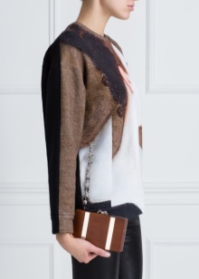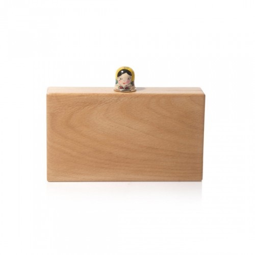 To complement the daily look, for example, consisting of denim shorts with bright print tops, you can add a stylish element in the form of a wooden clutch. Yes, it is wooden! Such an accessory will precisely dilute the everyday look and make it very creative. At the same time, the clutch does not look bulky, despite the rather complicated material.