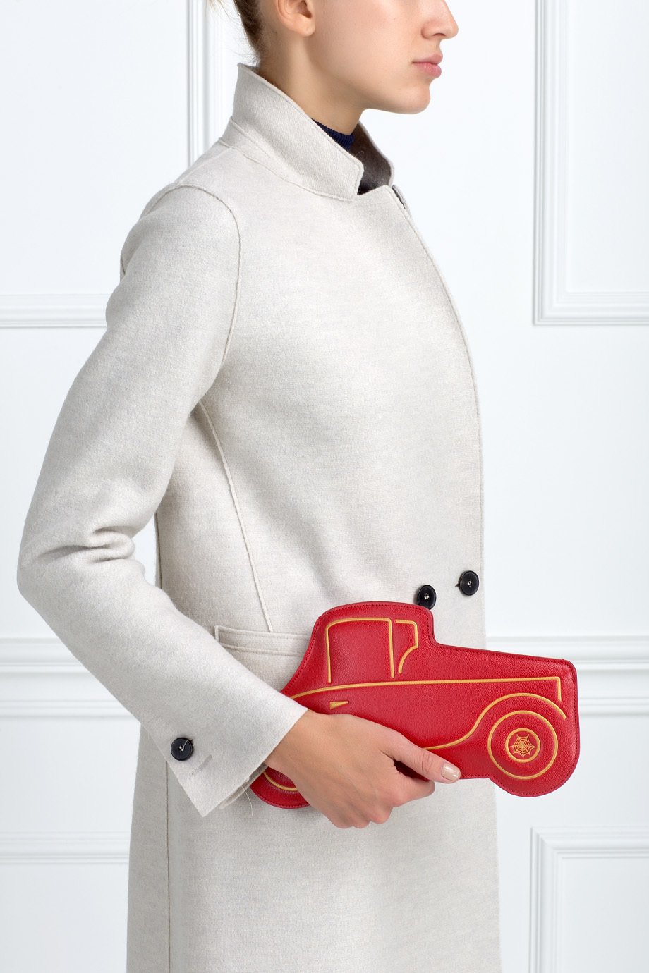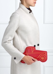 - Creative red clutch in the form of a retro leather car.