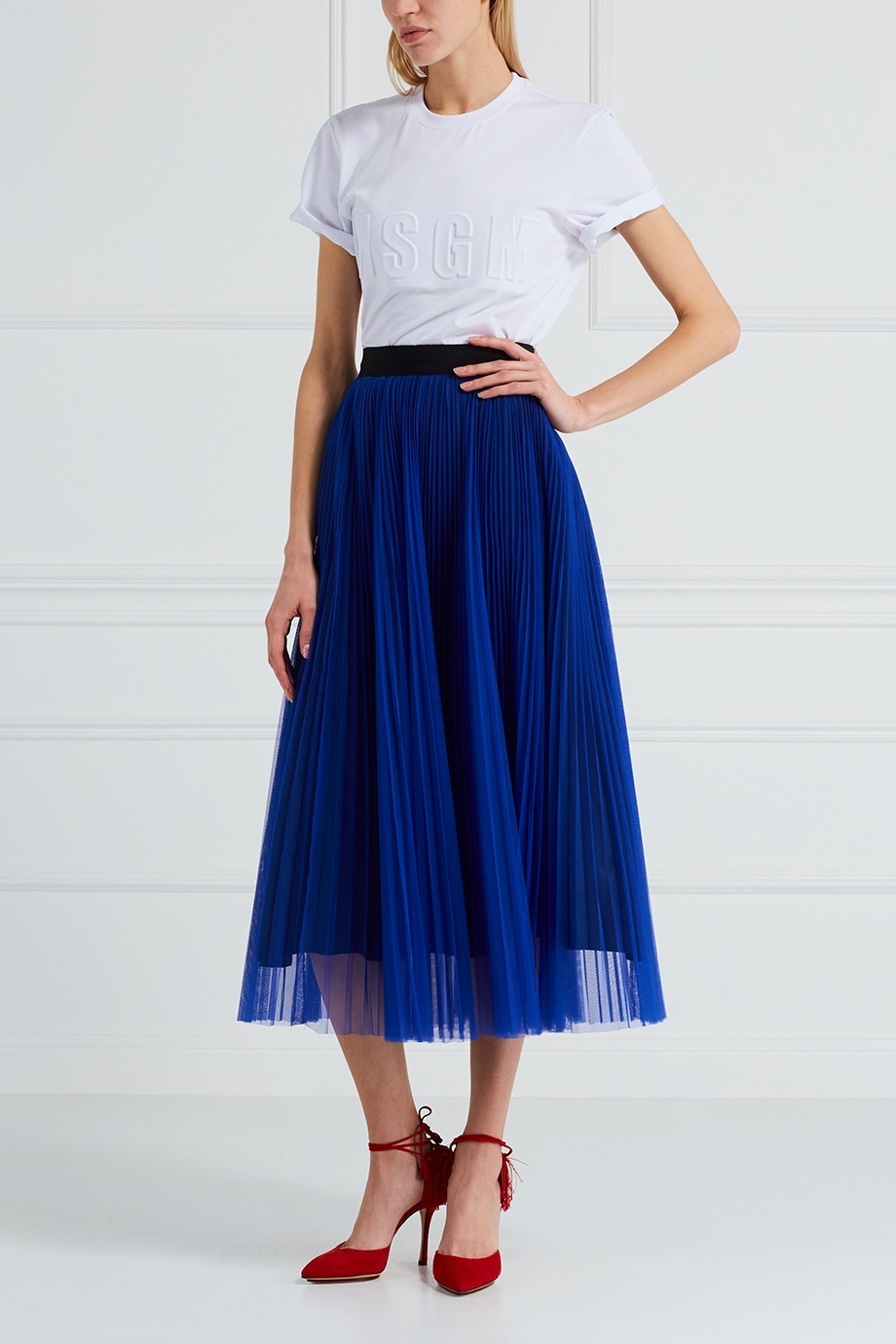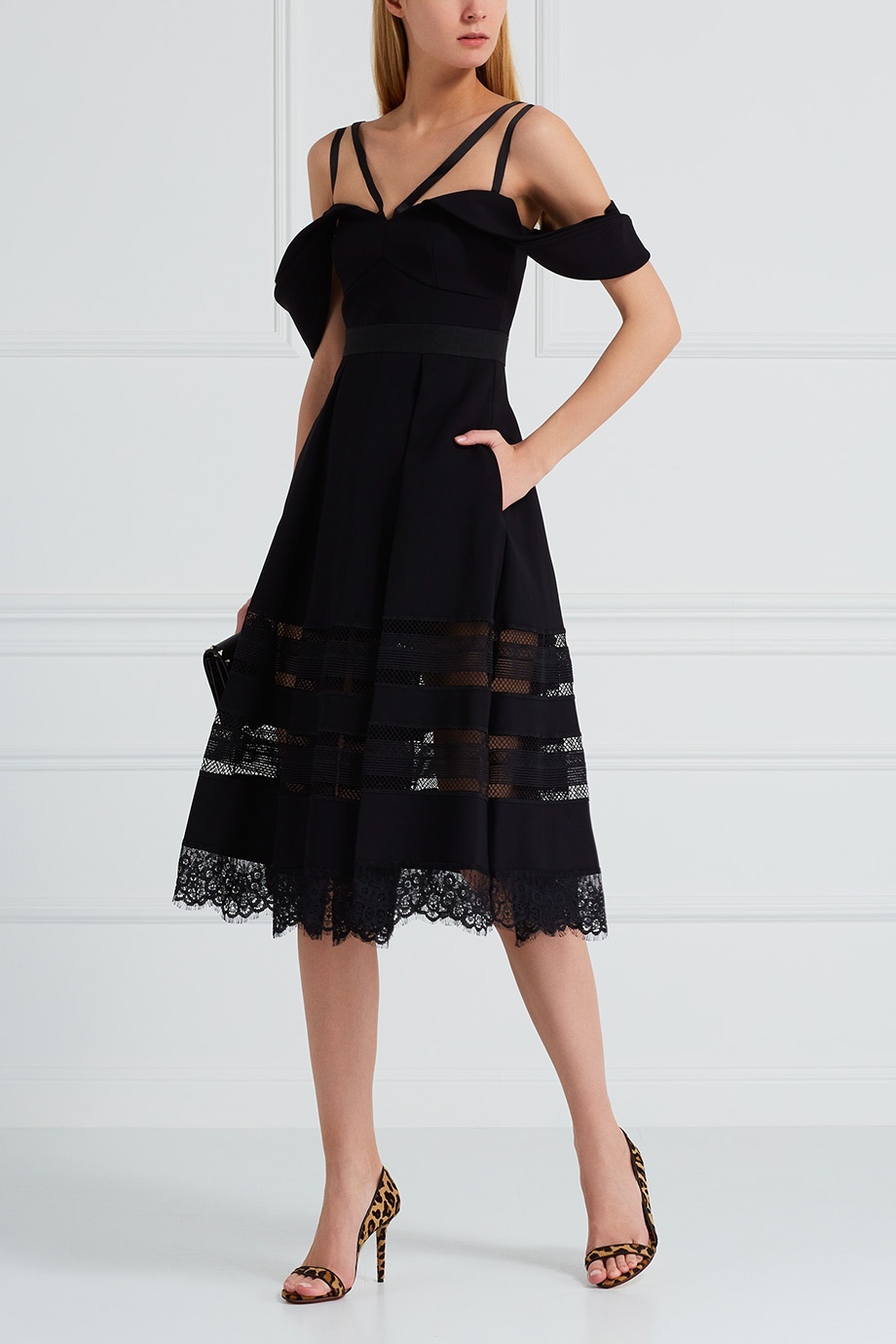 Many celebrities often surprise everyone on the red carpet with unusual combinations of elegant evening dresses with shoes with colored geometric or leopard patterns. That is how Charlotte imagined the merger of the glamorous fashion of the 40s and modern trends.