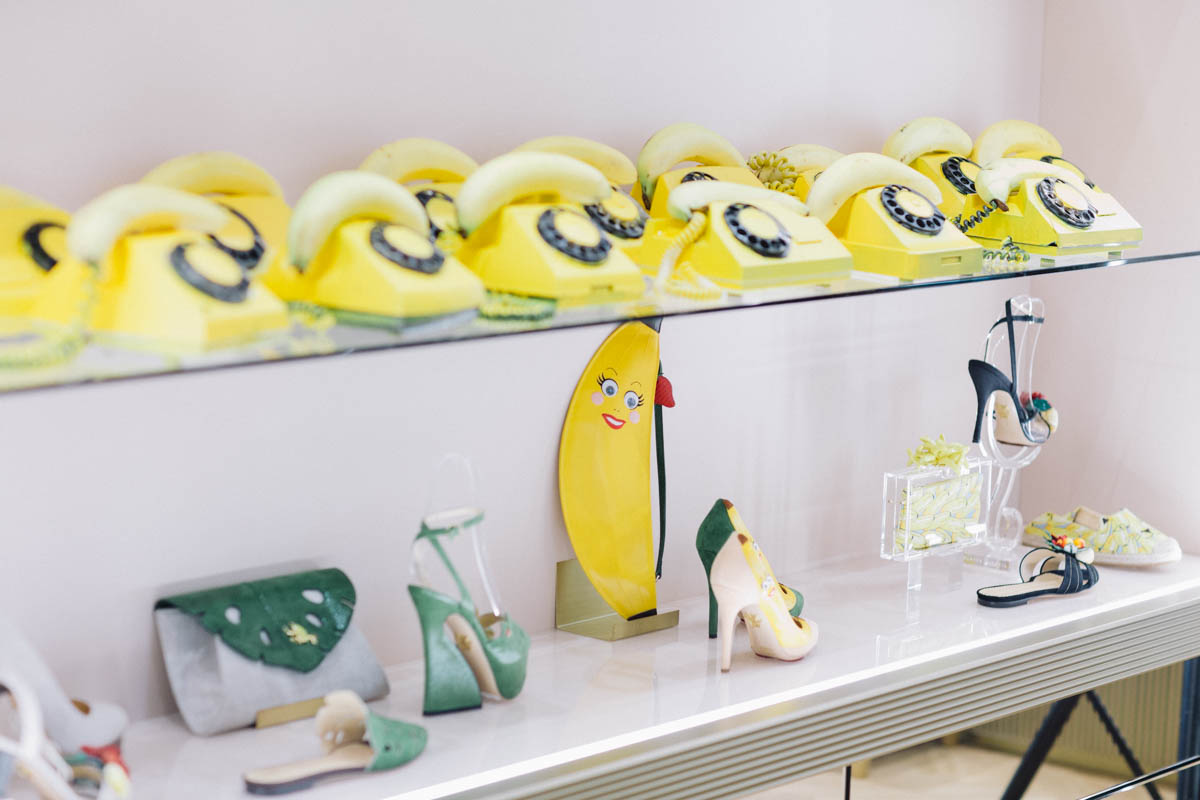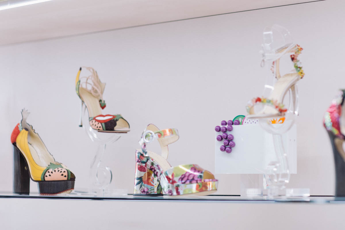 The creation of a collection of spring-summer 2017 designer Charlotte Olympia was inspired by the Brazilian singer Carmen Miranda. The collection contains shoes and sandals with heels, flat shoes, accessories. All products are made in bright summer colors characteristic of the entire line of the brand. Often there are embroideries and images of fruits and berries, most sandals have very high massive heels or platforms.