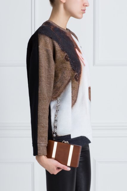 - laconic clutch made of wood and brass with a clasp in the form of a spider;