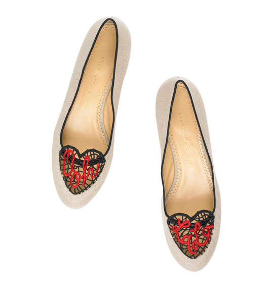 Continuing the theme of holidays, Charlotte’s shoes and accessories include a capsule collection of shoes called Be My Valentine, dedicated to Valentine’s Day.. It includes products from light materials in soft pastel colors, decorated with unusual elements of decor in the form of hearts and lips. The sole is also made in the shape of a heart.
