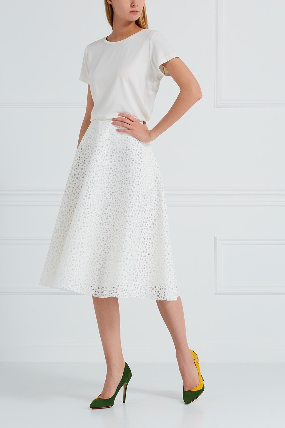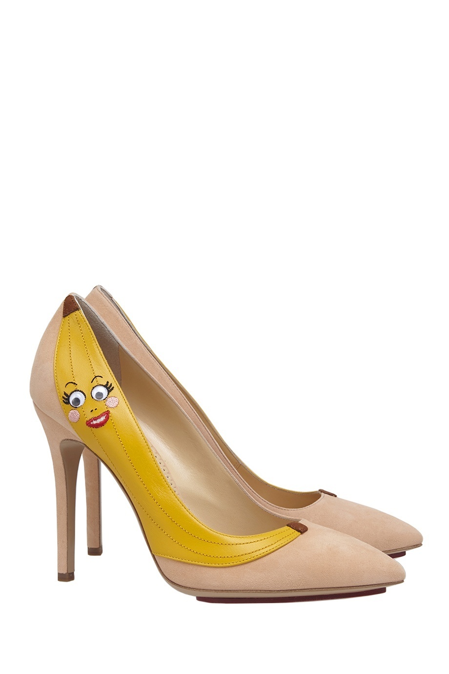 For a girl who prefers a classic style in clothes, suede pumps on an average heel with a striking appliqué in the form of a banana would be an excellent solution. Thus, you will look unusual and fashionable at the same time.