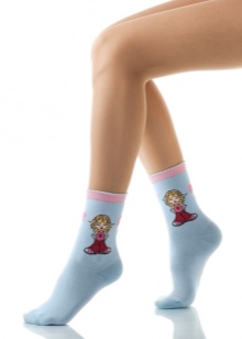 - Tights, stockings and socks. Tights and stockings - special pride of manufacturers.Decorated with intricate designs and intricate ornaments, tights or stockings will wonderfully emphasize the most luxurious evening look, will be a piquant addition to the romantic dress and will add a zest to the casual look. The color palette of tights is rich and diverse: someone prefers a classic black or flesh color, someone likes brighter and more saturated colors.