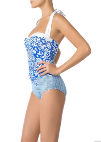 - Maritime theme. The most relevant and popular summer version. Bathing suits are made in contrasting blue and white colors and are decorated with elements of the marine theme.