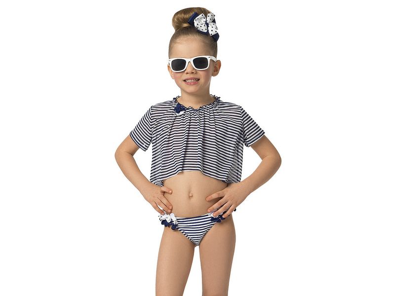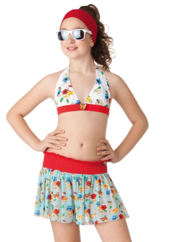 Separate swimsuits for girls are presented both in traditional performance and in more original versions. The bodice can be replaced with a top or tank top, trimmed with ruffles or similar to a scooter.