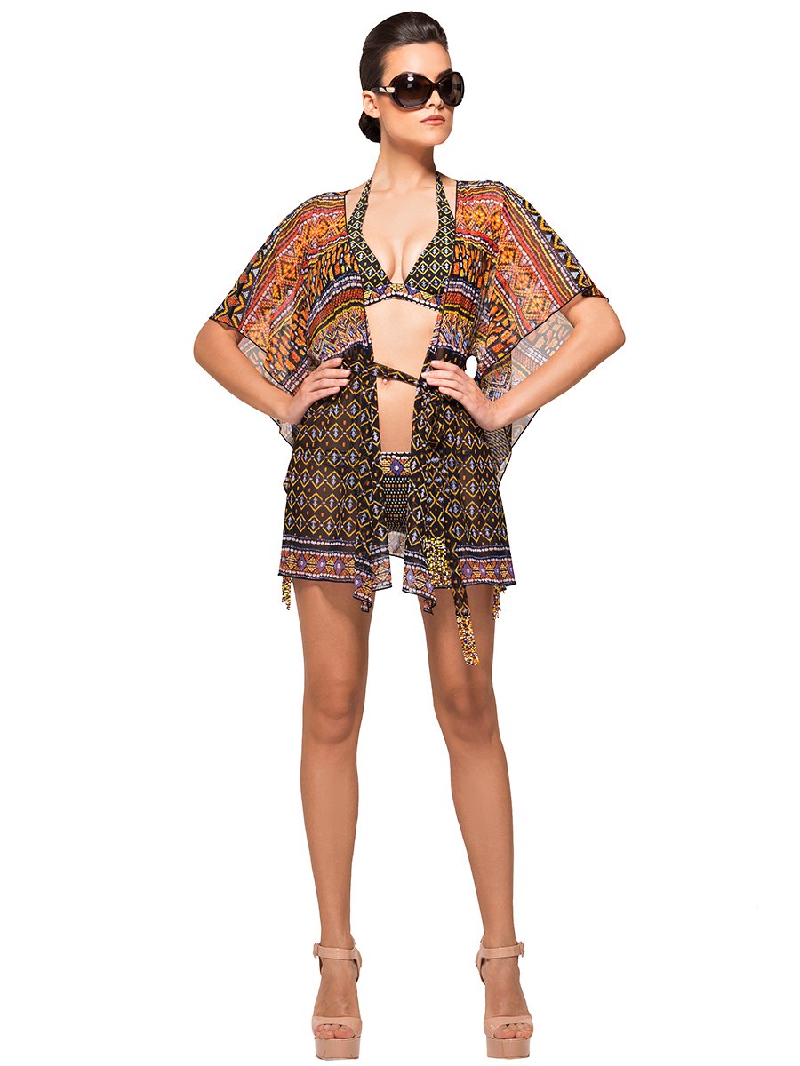 An integral part of any summer wardrobe. In the Charmante collections, it is represented by lightweight tunics of spectacular kimono cut, airy pareos, decorated with exotic flowers ornaments, stylish dresses, playful skirts, light trousers and uncluttered tops.