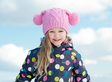 During the cold season, Crockid designers have developed a huge number of interesting options for hats, scarves, gloves made of fabrics such as fleece, acrylic, interlock. An interesting version of a hat-helmet in a bright pink color comfortable design. She covers not only her head, but also her neck - a great choice for a girl. It is impossible to do without such an accessory as a scarf-dickey warm and functional, indispensable for active kids. For the summer - it scarves, panama, and, of course, caps.