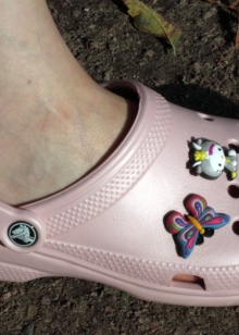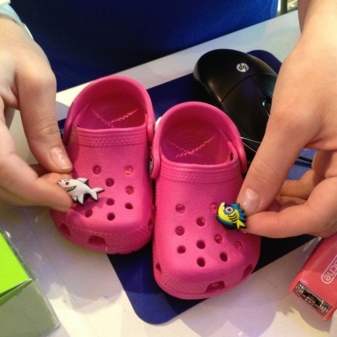 Crocs' most important feature in choosing accessories is jibbits. (Jibbitz), small but noticeable badges for decorating brand products. The variety of jibbits is amazing - among them you can find both cartoon characters and various images of butterflies, flowers, emoticons, hearts. Fixing them on crocs you create your own unique image.