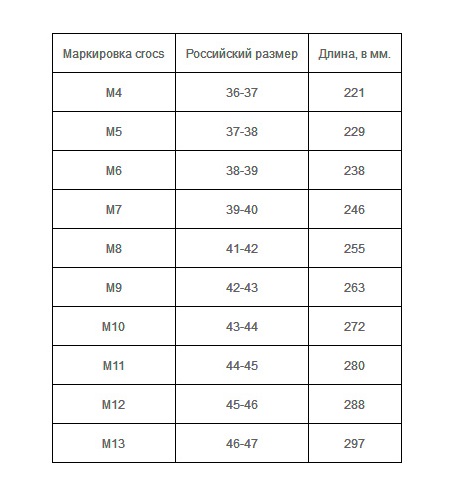 Men and women with different sizes of feet can easily pick crocs. Even owners of wide or narrow legs will find a suitable pair of shoes.