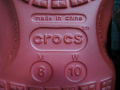 - The sole of the genuine crocs from Crocs contains information about the size, and on the one hand the sole - a link to the company's website, and on the other - comma separated boulder, colorado.