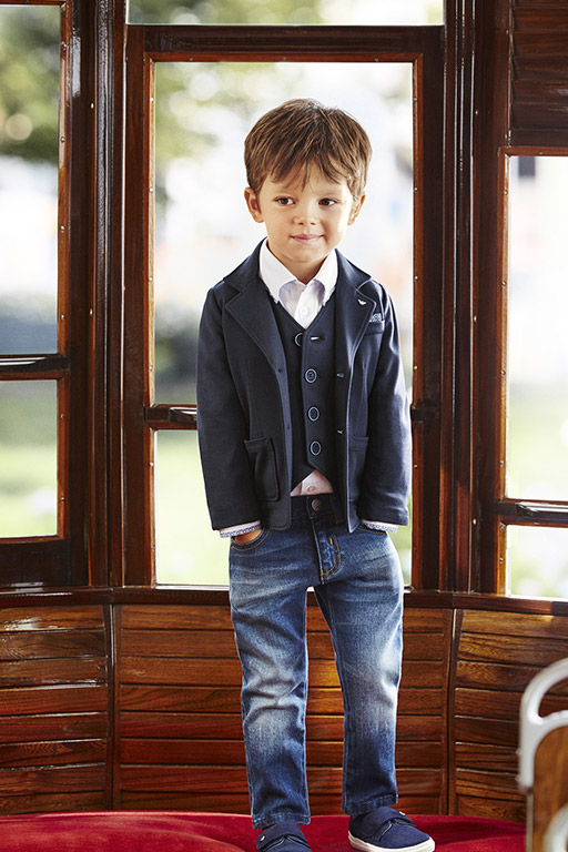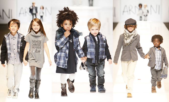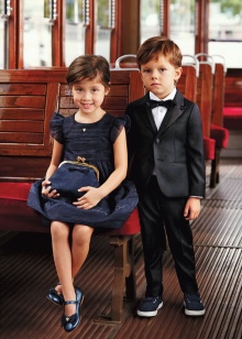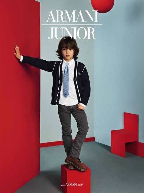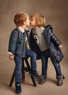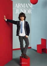 Armani junior - the direction of children's clothing, designed for different ages, from birth to 16 years. Diffuse line, includes cotton T-shirts, knitted dresses, leggings, jackets, cardigans, jeans, straight and skinny pants, bolero, breeches, jackets, shorts, skirts and blouses. Along with the traditional shades in this direction are often cheerful and sunny colors.