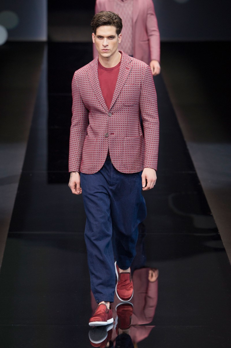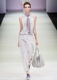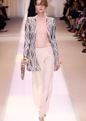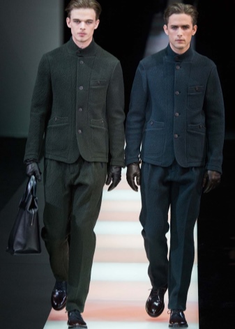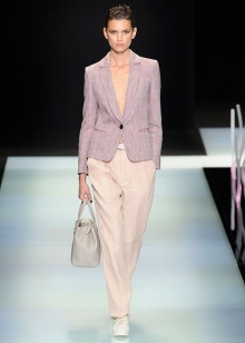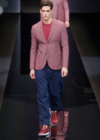 Anything inherent extraordinary simplicity. Whatever the cut, the thing must be comfortable. Thanks to innovative ideas of Giorgio Armani, a blazer appeared, then the couturier redrew the men's jacket, emphasizing the waistline and opening the chest, first began to use materials of different textures to create a fashionable set.
