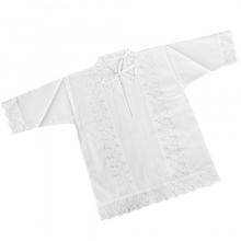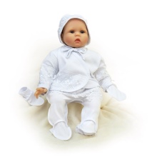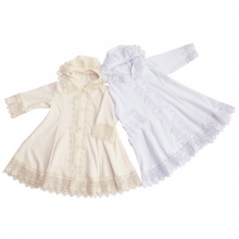 The collection includes several models of dresses for girls, shirts for boys, as well as scarves, towels and ready-made baptismal sets. All clothes are made in soft white and sand colors.