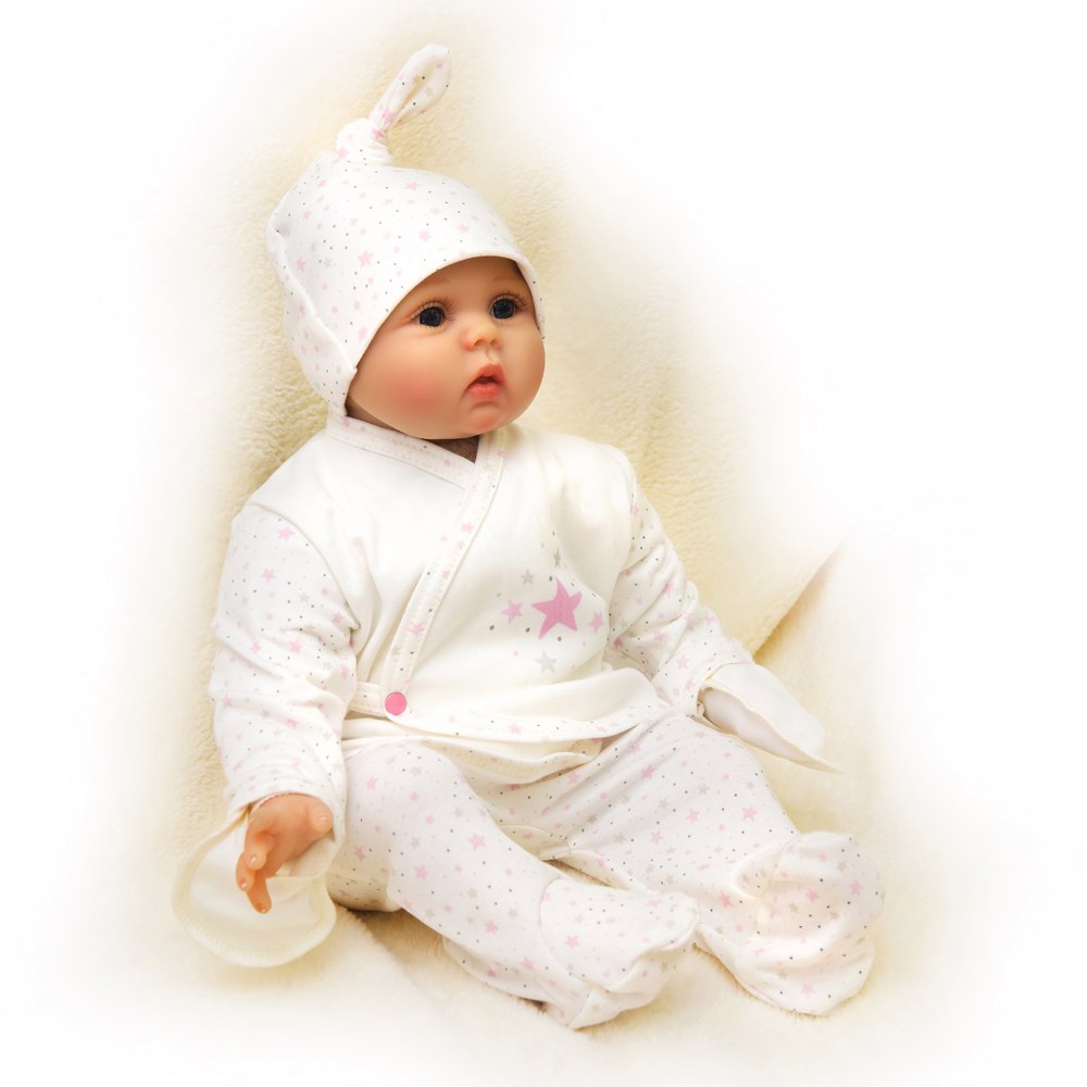 The collection also includes diapers, towels, hats, caps, booties and other newborn items.