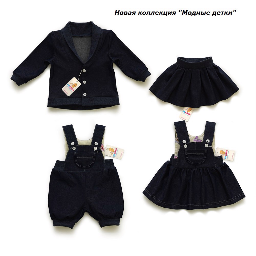This collection includes lingerie from kulirka, ribana and other materials and clothing for children (pajamas, suits, t-shirts, sundresses, dresses, skirts, blouses, vests, sweatshirts, leggings). Here and cozy fleece-terry bathrobes for kids, and stylish velor jumpers for young gentlemen, and denim dresses for young princesses.