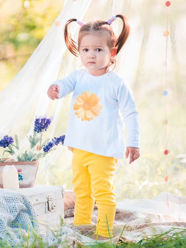 Children are attracted by the bright and unusual design. Favorite cartoon characters decorate stylish blouses, sweatshirts, pajamas. Funny animals cheer up. Girls like elegant dresses, decorated with frills and ruffles. Some models are supplemented with unique embroidery.