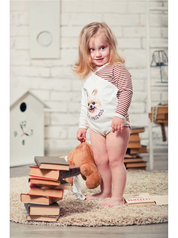 Mommies like the quality of knitwear. Softness and tenderness immediately attract attention. The fabric is durable and practical. It does not fade and long retains its original appearance. Knitwear allows the skin to breathe and is also hypoallergenic.