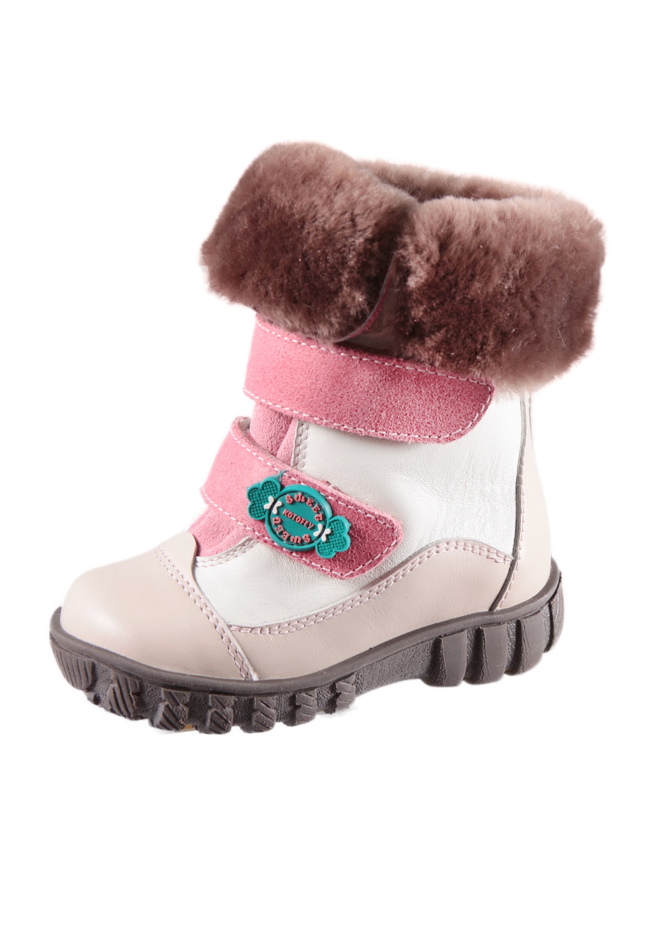 Particular attention is paid to the winter line. For such footwear only natural materials are used: sheepskin, natural fur or felt. Buyers choose the lining material depending on the climatic conditions and the child’s activities.
