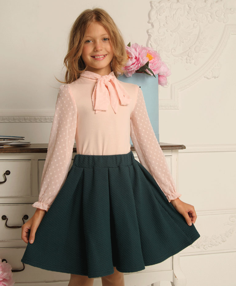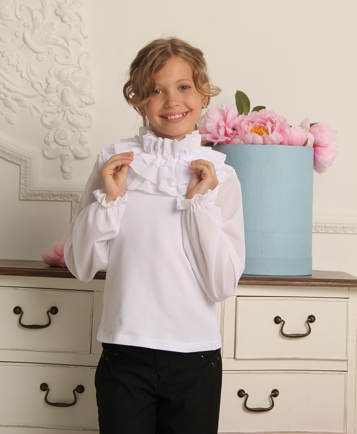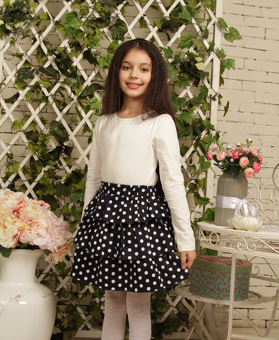 Not paid attention to "Belle" and school uniform. The collection is called "Fields in school". The color palette is black and white, as required by public schools. You can count several options for blouses, with both open and closed sleeves. For the bottom, it is proposed to purchase black skirts of various styles.