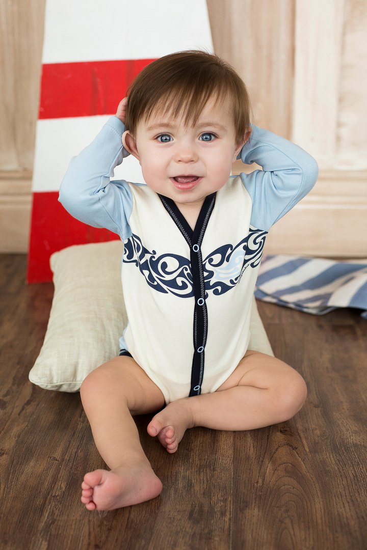 Among the variety of body in great demand model Watercolor. She has a long sleeve that many moms like. The baby’s handles are protected from sunlight and scratches. Models made of soft, natural cotton.