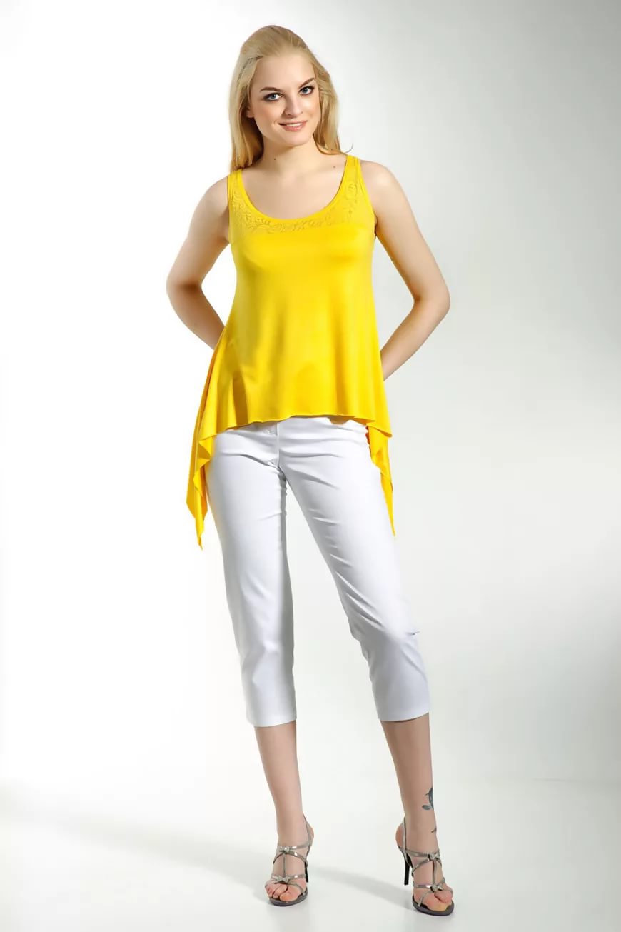 Modern women of fashion can try on classic models with wide straps or sexy and slinky pieces on thin straps. Elegant outfits are perfect for the summer season. They can go for a walk or shopping. Favorite solid top is quite suitable for going to work, if it is supplemented with a jacket or jacket.